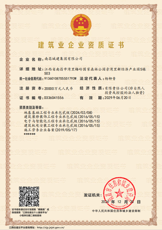 地基基础工程专业承包、建筑装修装饰工程专业承包、电子与智能化工程专业承包、建筑机电安装工程承包贰级