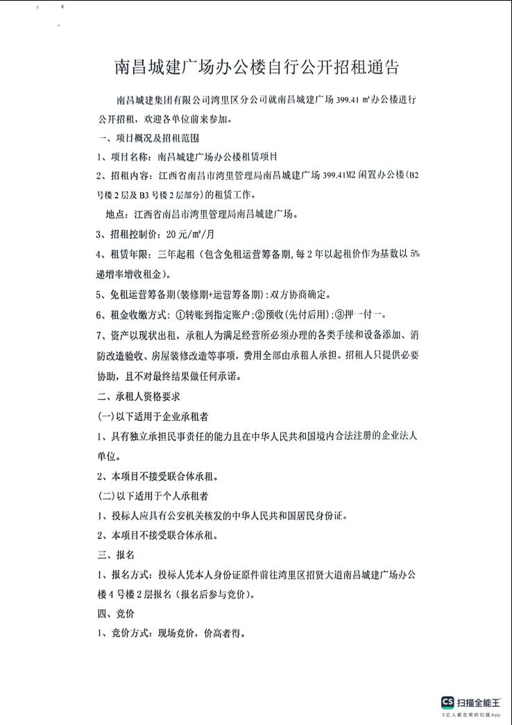 必赢亚州242.net广场办公楼自行公开招租通告
