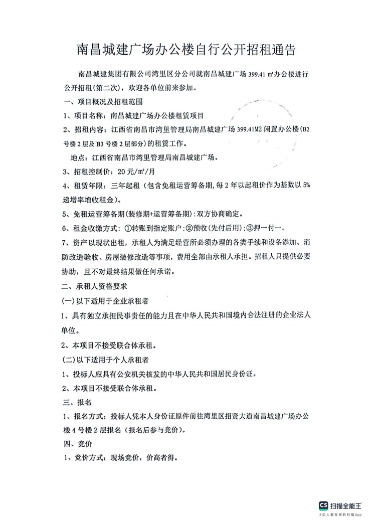必赢亚州242.net广场办公楼自主招租流标情况公