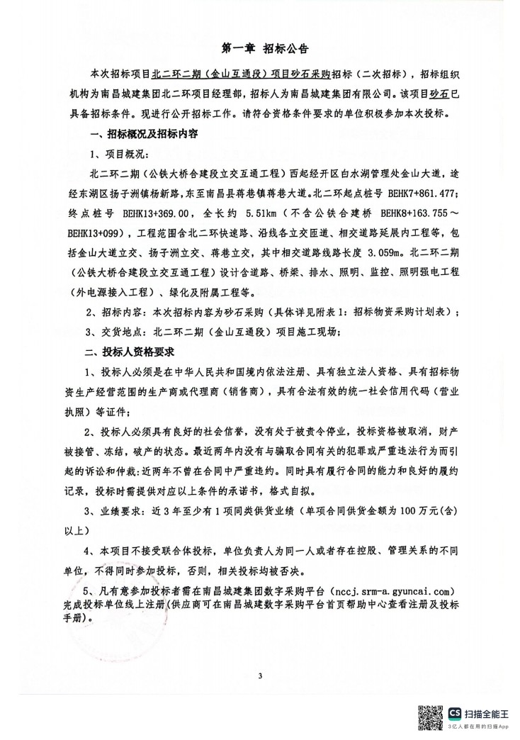 必赢亚州242.net集团北二环二期(金山互通段)项目砂石采购(二次招标)招标公告