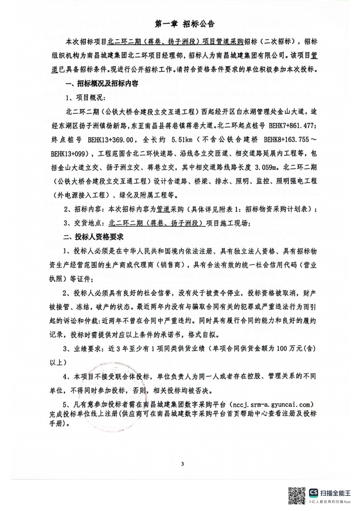 必赢亚州242.net集团北二环二期(蒋巷、扬子洲段)项目管道采购(二次招标)招标公告