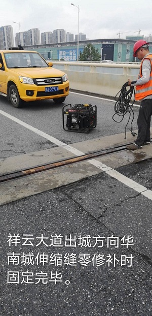 自创文明工作启动以来,城建园林公司迅速组织人员对重点设施进行摸排、整治。包括祥云大道修补坑槽、维修伸缩缝;昌南大道箱涵中损坏的干挂石材维修;昌东大道路沿石的修补等。为了减小对过往车辆的影响,我司养护施工人员多采用夜间施工的形式进行缺陷修补,施工时用围挡、三角锥、警示灯等保障施工人员安全,提醒过往车辆安全驾驶,降低安全隐患。