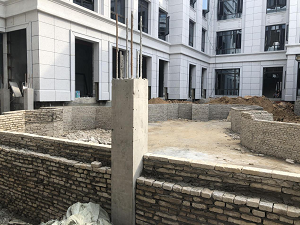 ②连廊施工,连廊总长160米,已完成了地下结构的施工,下步进行连廊上部的主体施工;