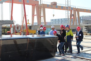 考察团一行首先来到生产现场,通过听取情况介绍和实地观摩的形式,详细了解梁场的建设情况,并对预制梁的生产能力、生产工艺、生产计划等方面的工作情况进行询问交流。