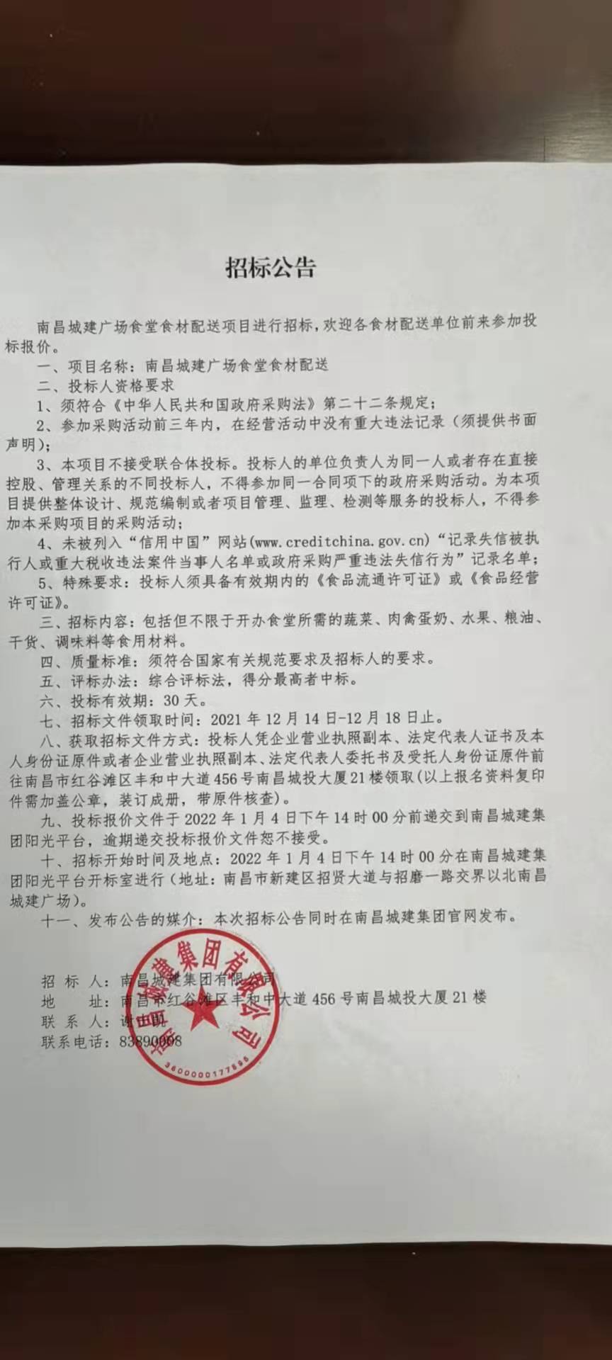 十、招标开始时间及地点:2022年1月4日下午14时00分在必赢亚州242.net集团阳光平台开标室进行(地址:南昌市新建区招贤大道与招磨一路交界以北必赢亚州242.net广场)。