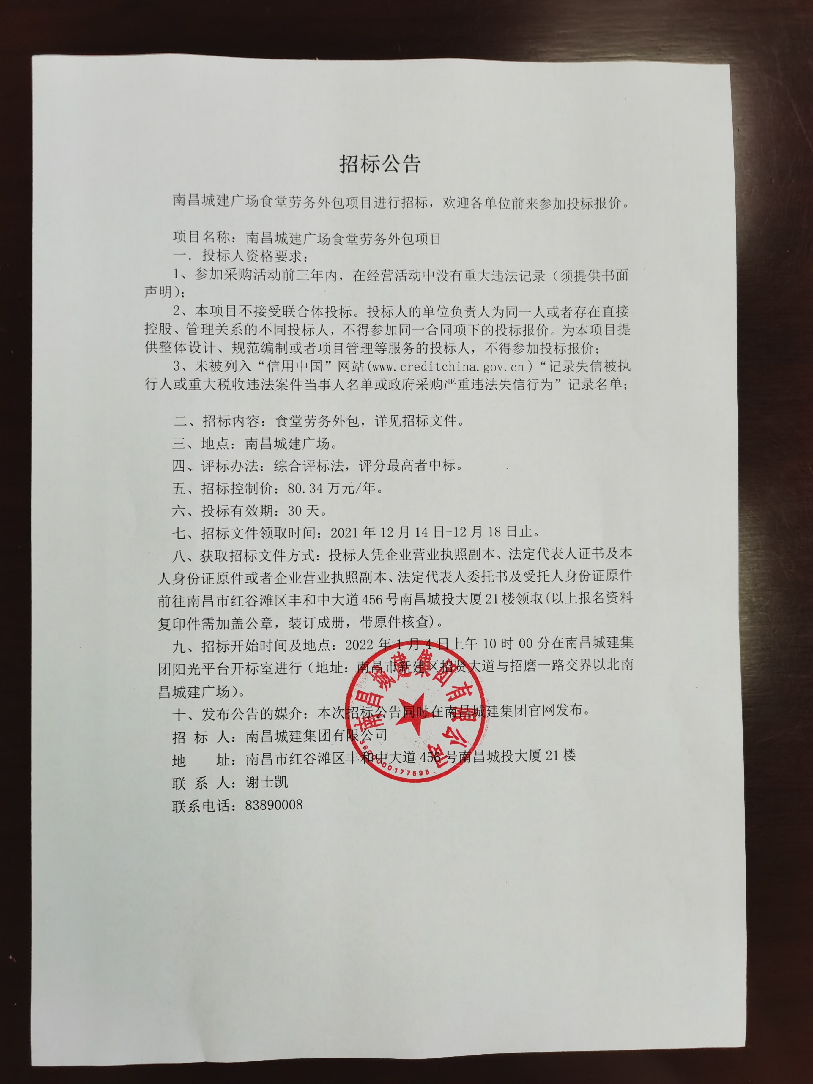 必赢亚州242.net广场食堂劳务外包项目进行招标,欢迎各单位前来参加投标报价。