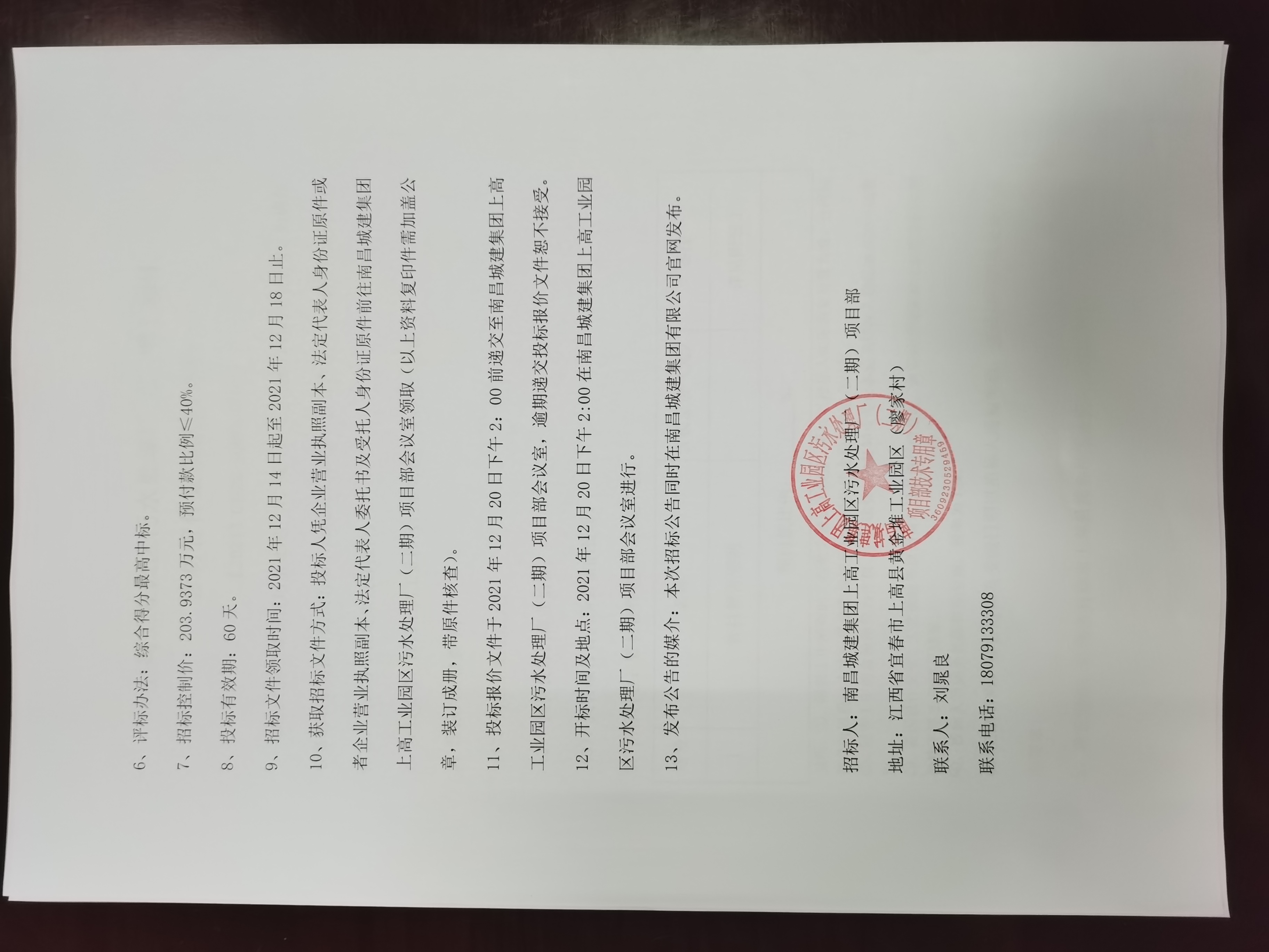 12、开标时间及地点:2021年12月20日下午2:00在必赢亚州242.net集团上高工业园区污水处理厂(二期)项目部会议室进行。