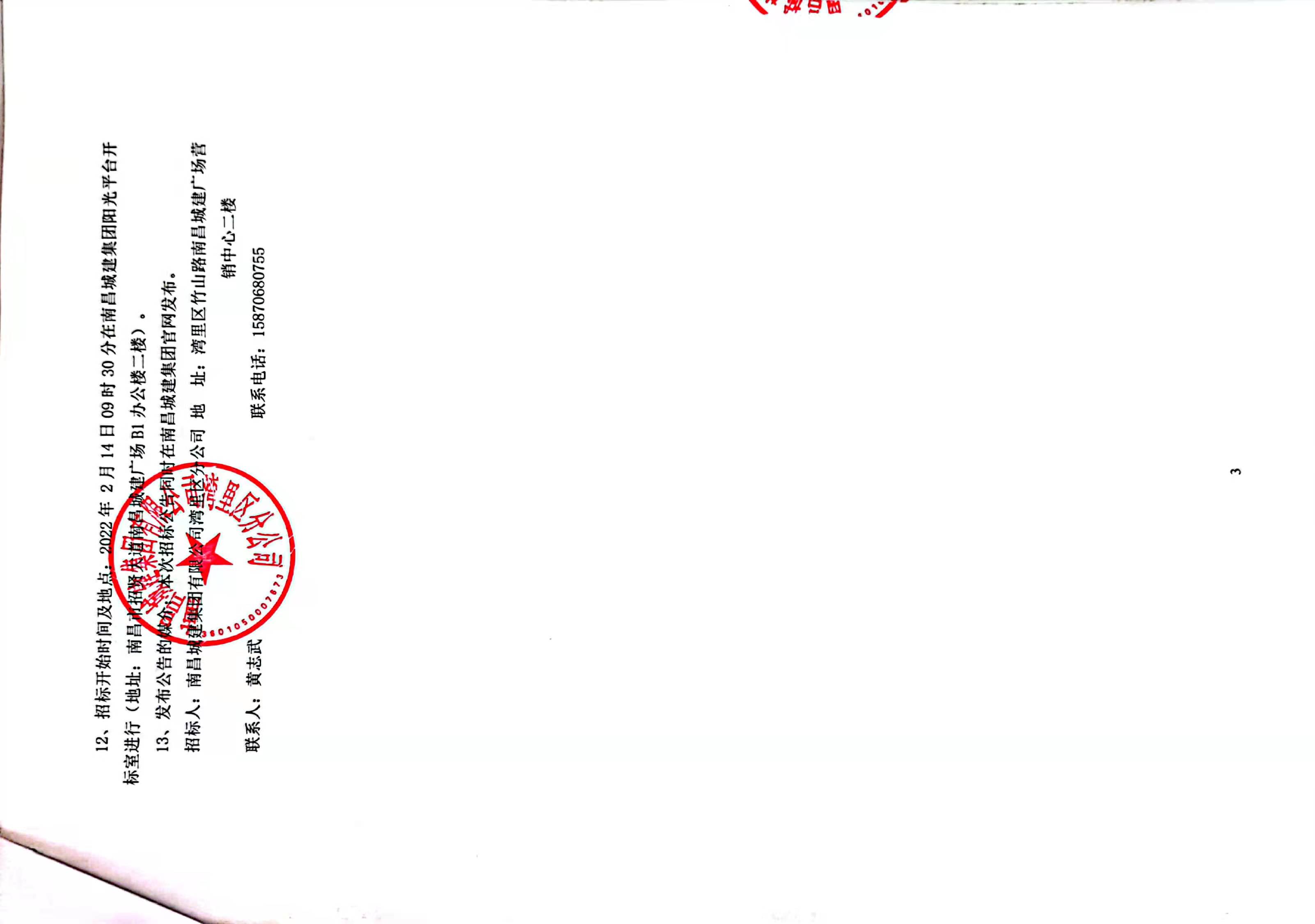 12、招标开始时间及地点:2022年 2月14日09时30分在必赢亚州242.net集团阳光平台开标室进行(地址:南昌市招贤大道必赢亚州242.net广场B1办公楼三楼)。