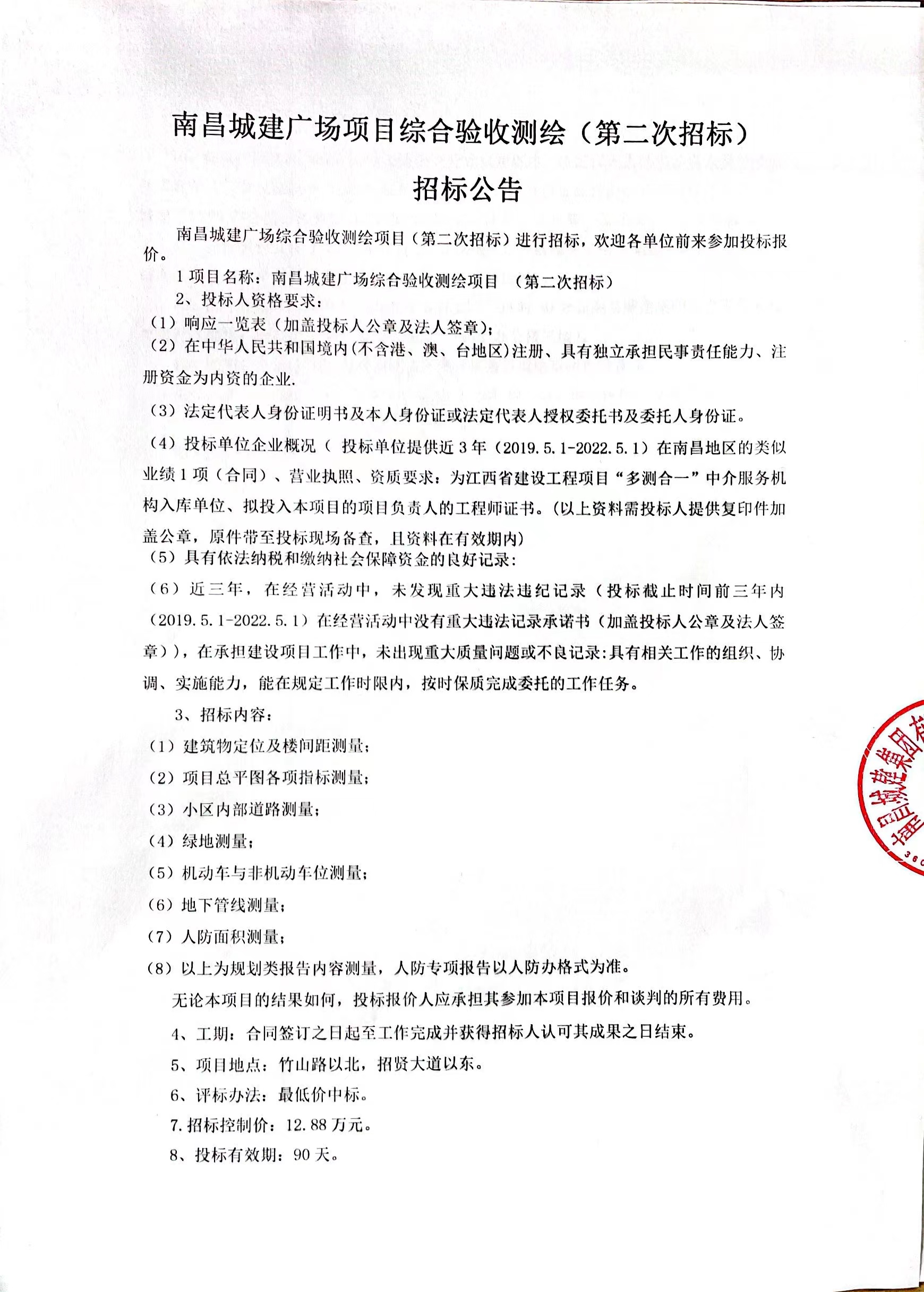 1项目名称:必赢亚州242.net广场综合验收测绘项目 (第二次招标)