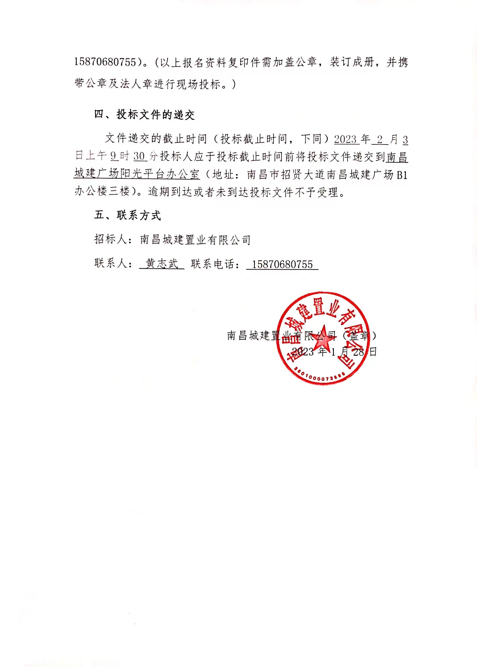 文件递交的截止时间(投标截止时间,下同)2023年 2 月3日上午9时30分投标人应于投标截止时间前将投标文件递交到必赢亚州242.net广场阳光平台办公室(地址:南昌市招贤大道必赢亚州242.net广场B1办公楼三楼)。逾期到达或者未到达投标文件不予受理。
