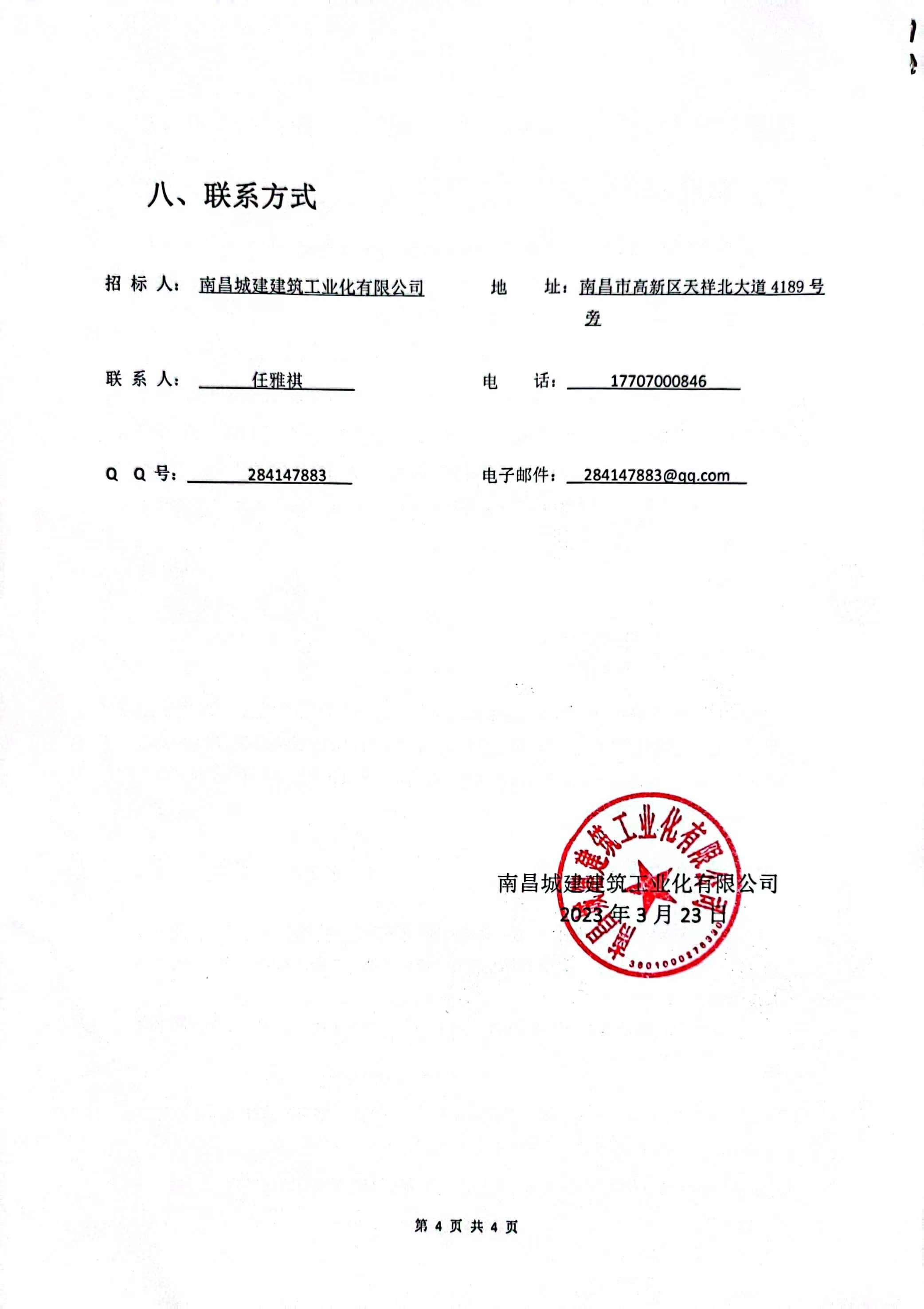 招 标 人: 必赢亚州242.net建筑工业化有限公司 地 址:南昌市高新区天祥北大道4189号旁