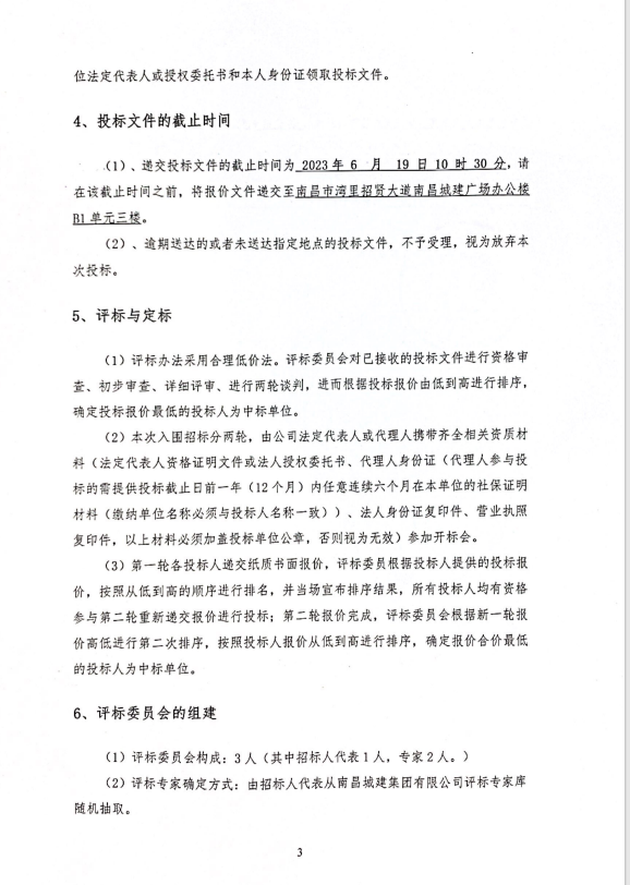 (1)、递交投标文件的截止时间为 2023年 6 月 19 日 10 时 30 分,请在该截止时间之前,将报价文件递交至南昌市湾里招贤大道必赢亚州242.net广场办公楼B1单元三楼。