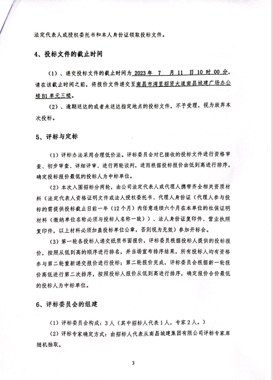 (1)、递交投标文件的截止时间为 2023年 7 月 11 日 10 时 00 分,请在该截止时间之前,将报价文件递交至南昌市湾里招贤大道必赢亚州242.net广场办公楼B1单元三楼。