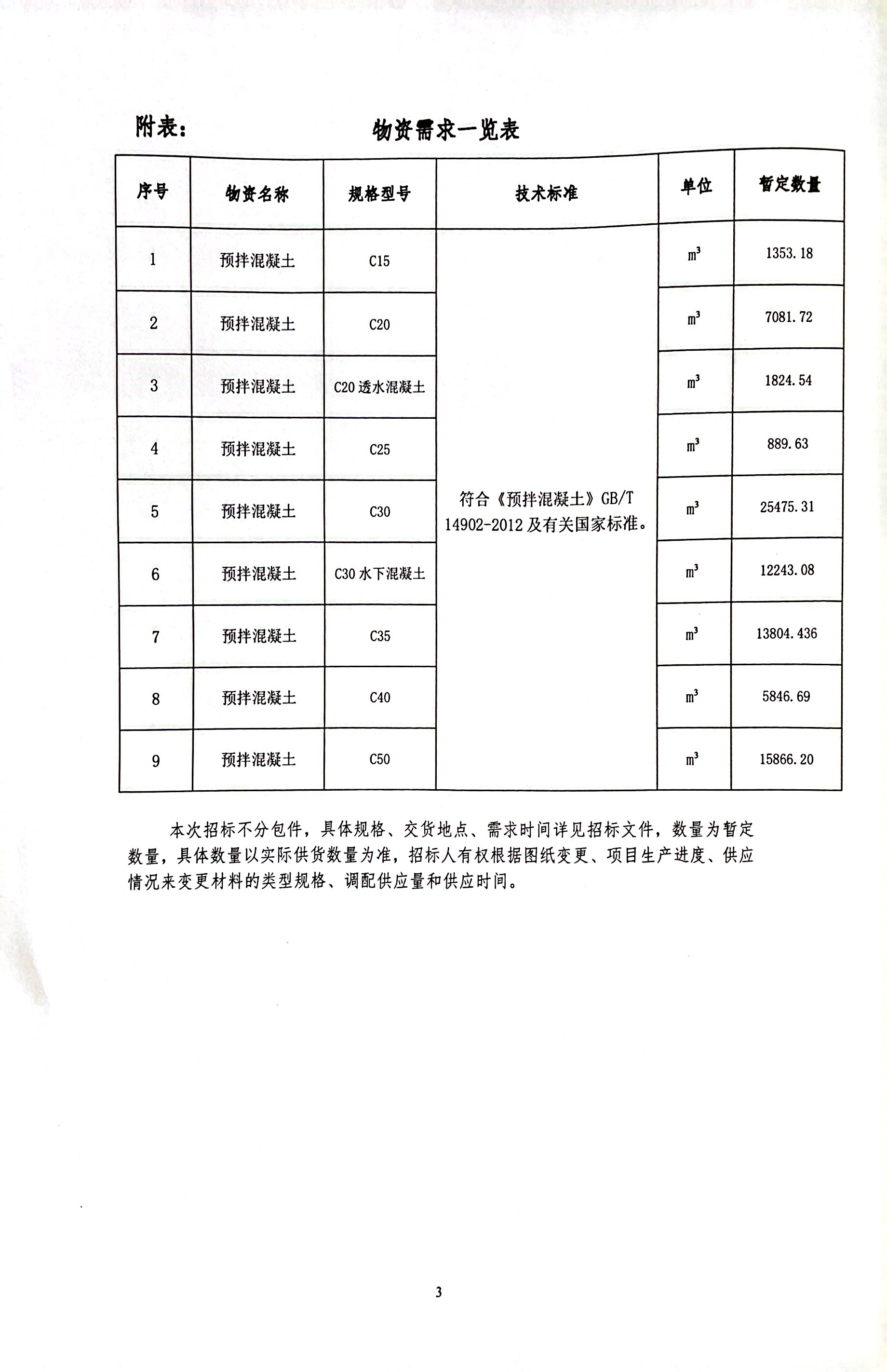 3、招标内容:混凝土 ;详见物资需求一览表,结算以实际签收数量为准。