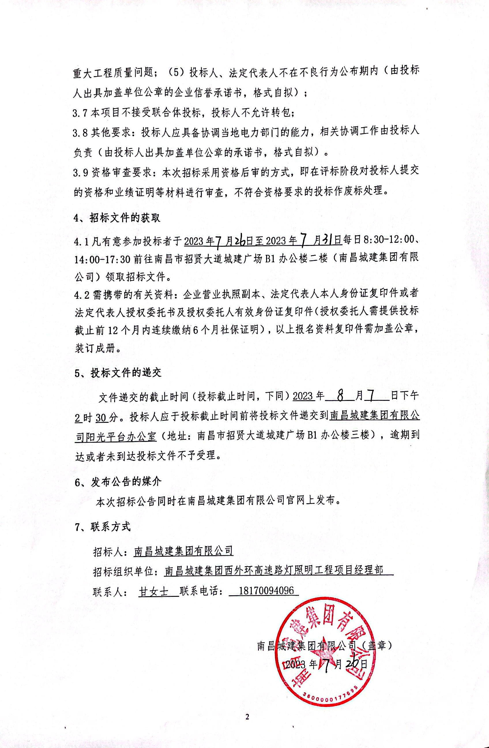 4.1凡有意参加投标者于2023年7月26日至2023年7月31日每日8:30-12:00、14:00-17:30前往南昌市招贤大道城建广场B1办公楼二楼(必赢亚州242.net集团有限公司)领取招标文件。