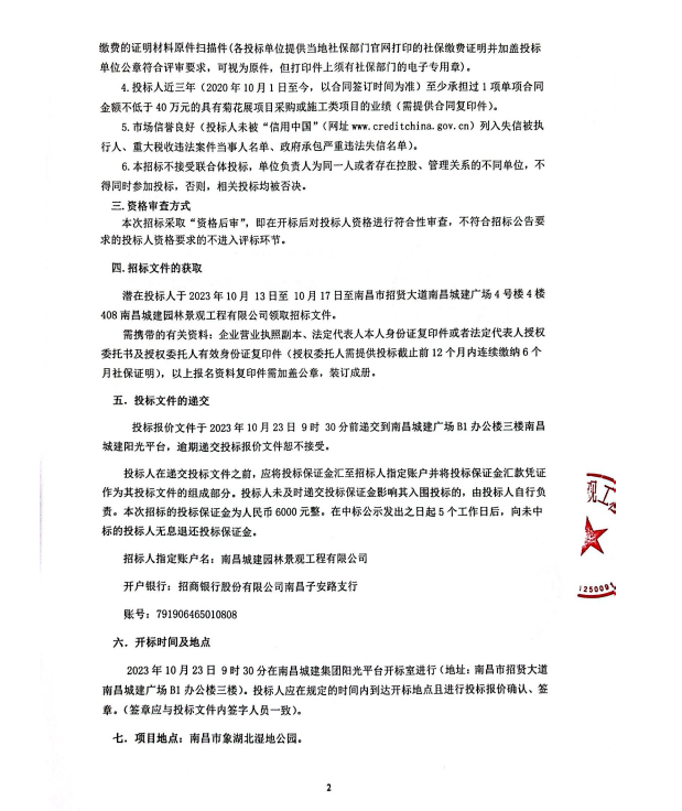 必赢亚州242.net园林景观工程有限公司现拟对南昌市第三十五届菊花展市建投展区布展项目所需材料进行公开招标。