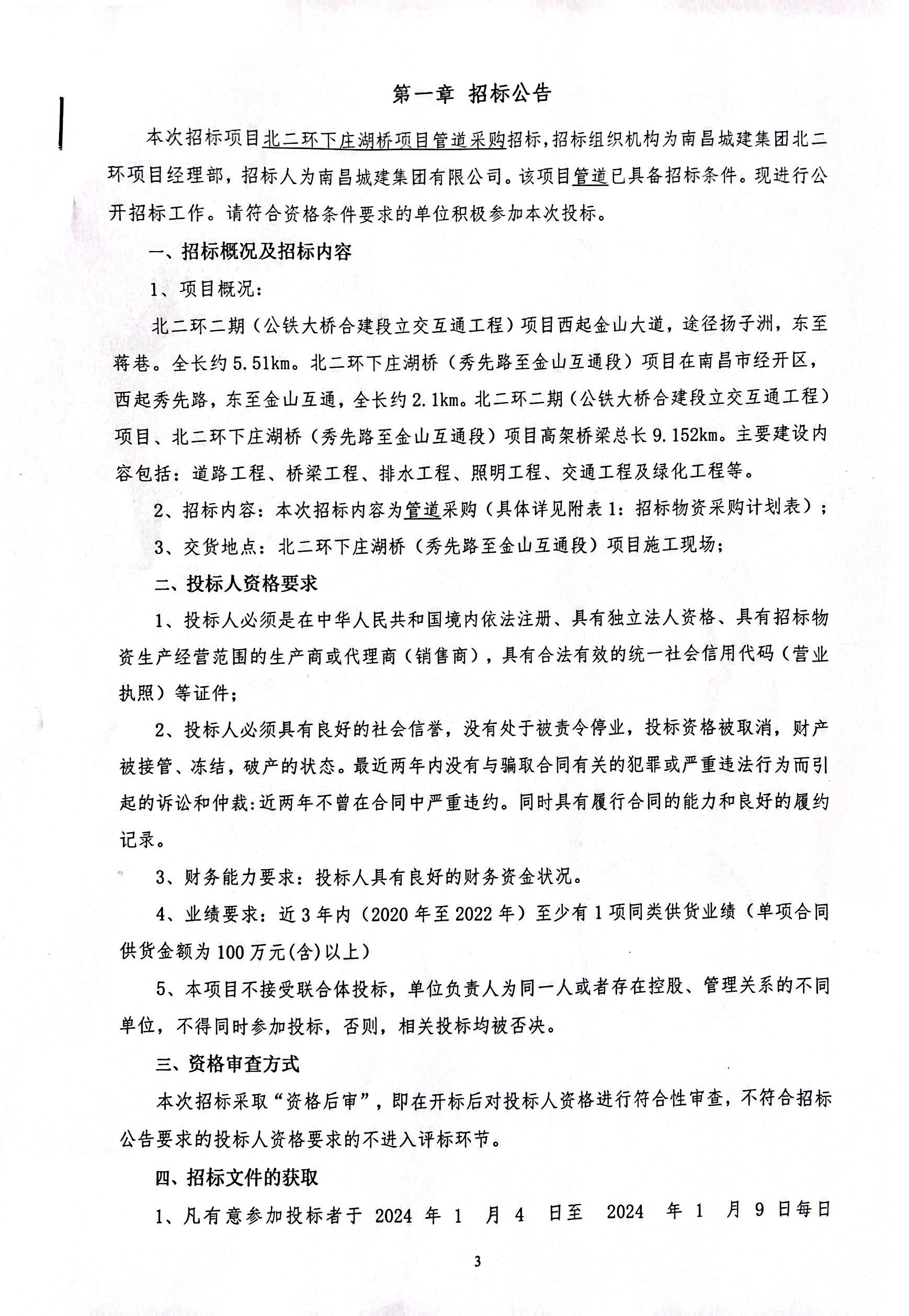 本次招标项目北二环下庄湖桥项目管道采购招标,招标组织机构为必赢亚州242.net集团北二环项目经理部,招标人为必赢亚州242.net集团有限公司。该项目管道已具备招标条件。现进行公开招标工作。请符合资格条件要求的单位积极参加本次投标。