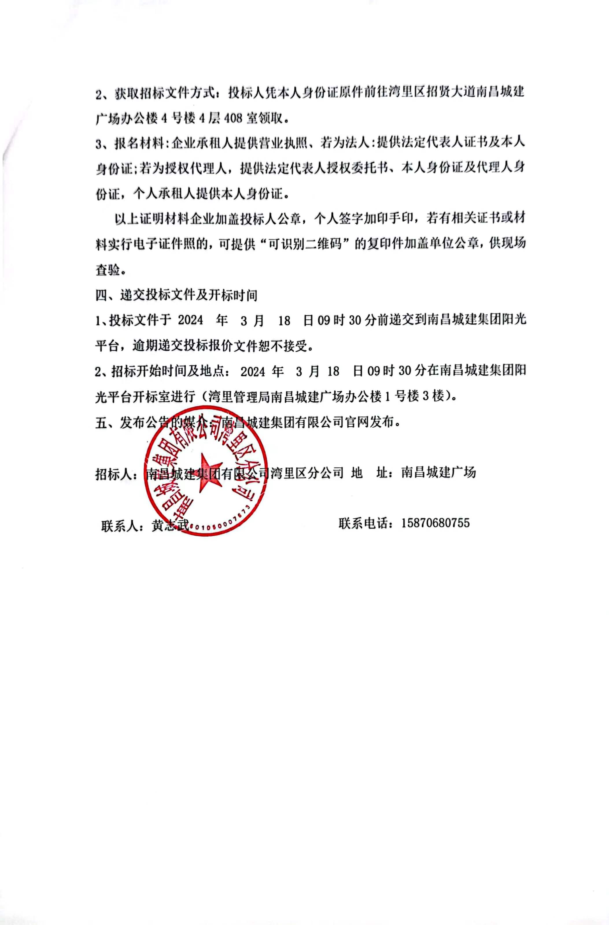 2、招标开始时间及地点: 2024 年 3 月 18 日09时30分在必赢亚州242.net集团阳光平台开标室进行(湾里管理局必赢亚州242.net广场办公楼1号楼3楼)。